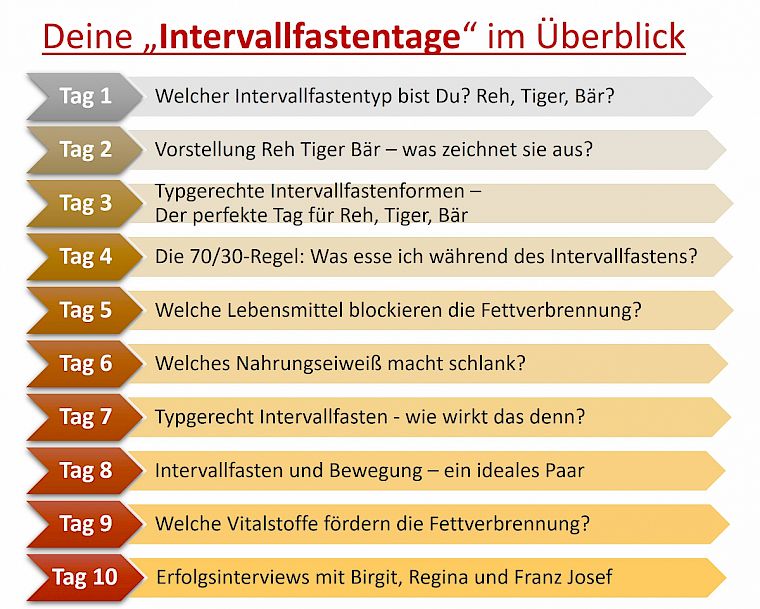 Das Typgerechte 10-Tage Online “Intervallfasten-Coaching” zeigt Dir Schritt für Schritt wie das geht!