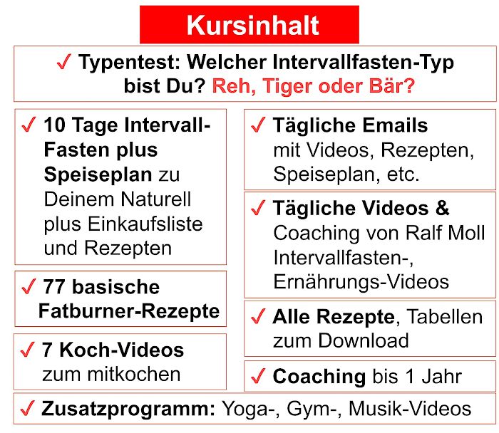 ✅ Ralf Moll coacht Dich 10 Tage: Du bekommst täglich ein Info- und Ernährungsvideo von Ralf Moll zum Intervallfasten, Naturell-Lehre, zu allen Entsäuerungs- und Abnehm-Themen etc.