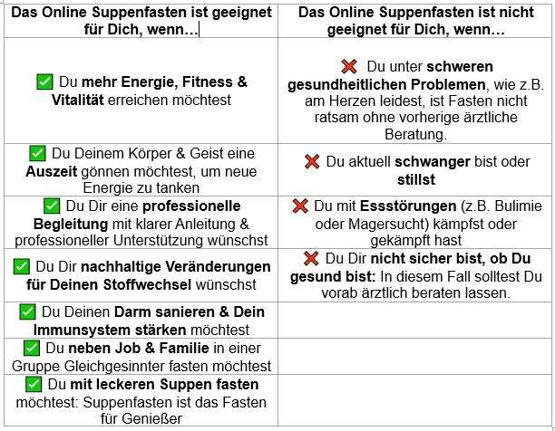 ✅ Suppenfasten ist ideal für Neulinge, Einsteiger, Fastenprofis, Kurzentschlossene - auch nach längerer Medikamenteneinnahme und nach Operationen zur Regeneration oder als Reset