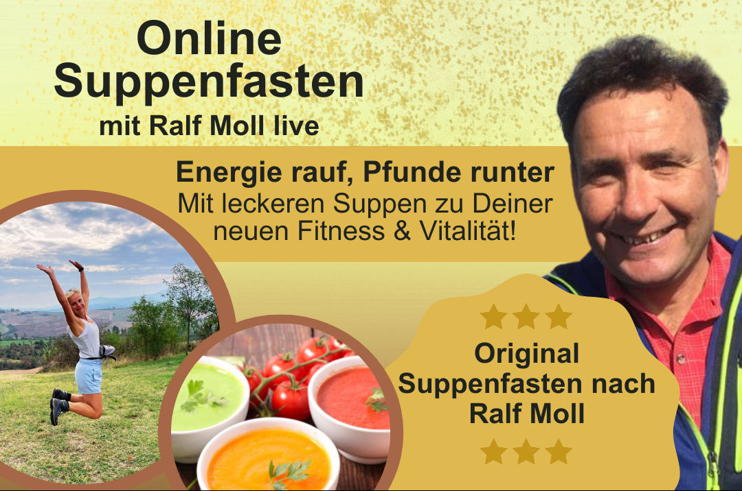 Ralf Moll ist der Begründer des Original Suppenfastens nach Ralf Moll. Er hat das Suppenfasten vor 30 Jahren entwickelt & in seinem eigenen Fastenzentrum im Schwarzwald perfektioniert. Bereits 100.000 Menschen haben bereits erfolgreich mit leckeren Suppen mit uns gefastet.